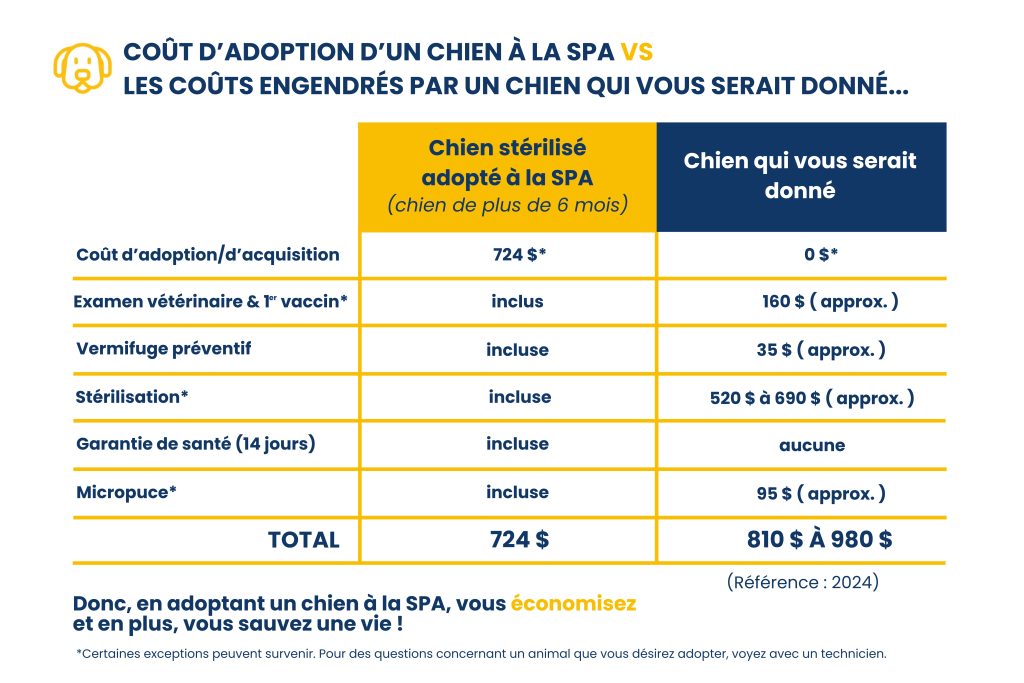En adoptant un animal à la SPA de Québec, vous contribuez à sauver une vie et en plus, vous économisez!